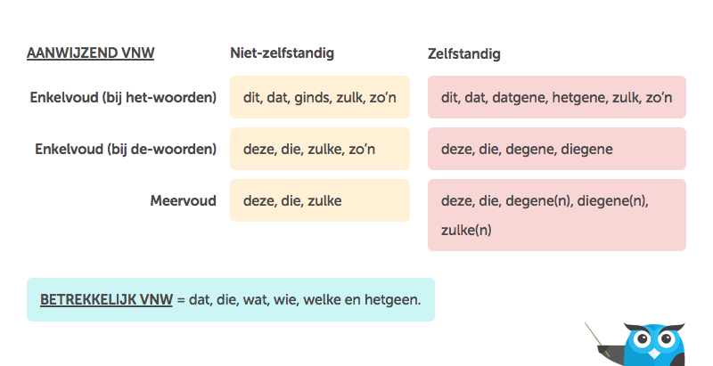 AANWIJZEND VNW Niet-zelfstandig Zelfstandig