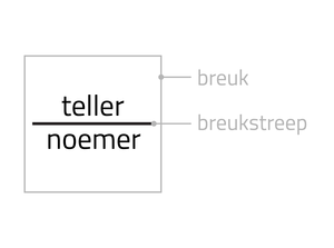 Een breuk bestaat uit een teller en een noemer die door een breukstreep gescheiden worden.